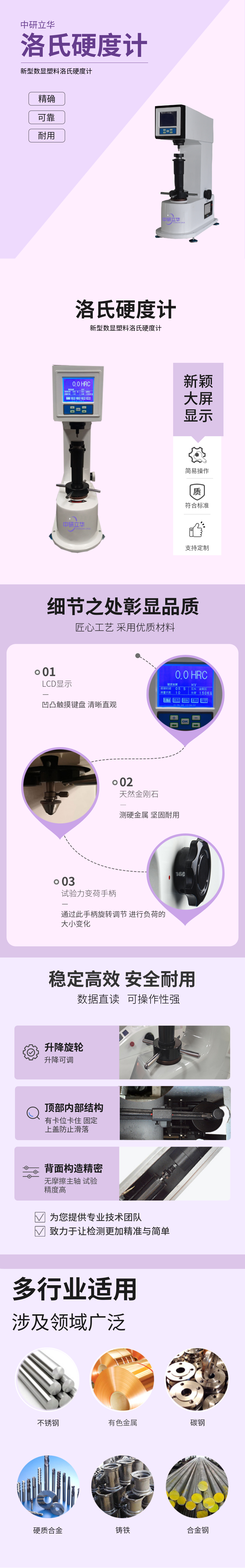 用途:適用于硬塑料、硬橡膠,鋁、錫、銅、軟鋼、合成樹脂及磨擦材料等材料的硬度測量。
