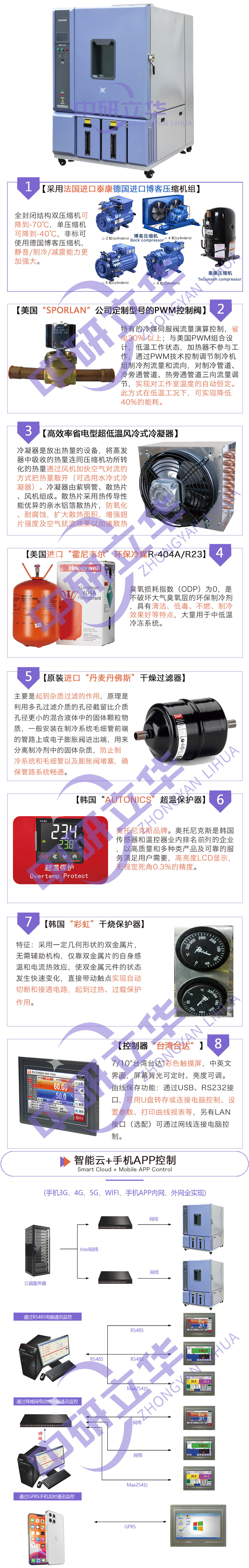 50人熟練工種,有10年以上試驗箱生產經驗;核心零配件全部進口,ISO9001質量體系,每道工序檢驗嚴格。
