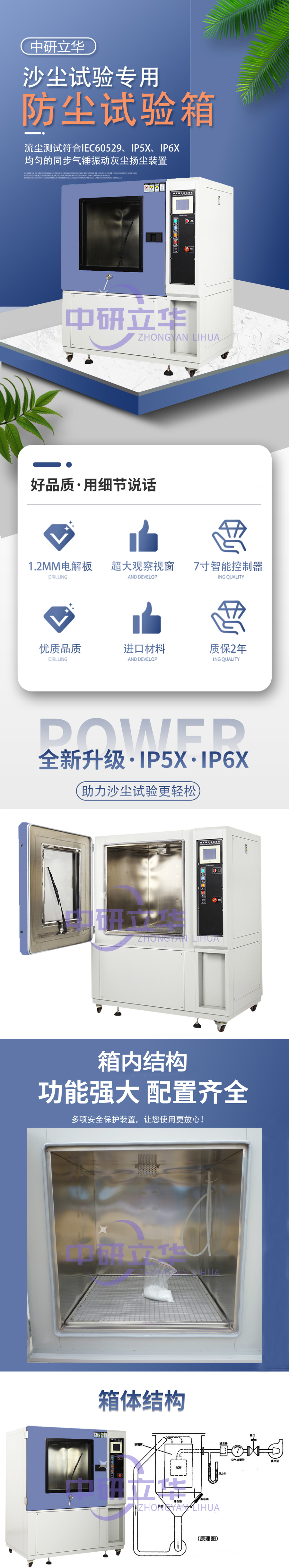 沙塵試驗箱學(xué)名為“砂塵試驗箱”,模擬自然界風(fēng)沙氣候?qū)Ξa(chǎn)品的破壞性,適用于檢測產(chǎn)品的外殼密封性能,主要用于外殼防護(hù)等級標(biāo)準(zhǔn)中規(guī)定的IP5X和IP6X兩個等級的試驗。該設(shè)備適用于電工電子產(chǎn)品、汽車摩托車零部件、密封件在砂塵環(huán)境中防止砂塵進(jìn)入密封件和外殼的試驗。以檢驗電子電工產(chǎn)品、汽車、摩托車零部件、密封件在砂塵環(huán)境中的使用、貯存、運輸?shù)男阅堋?/span>