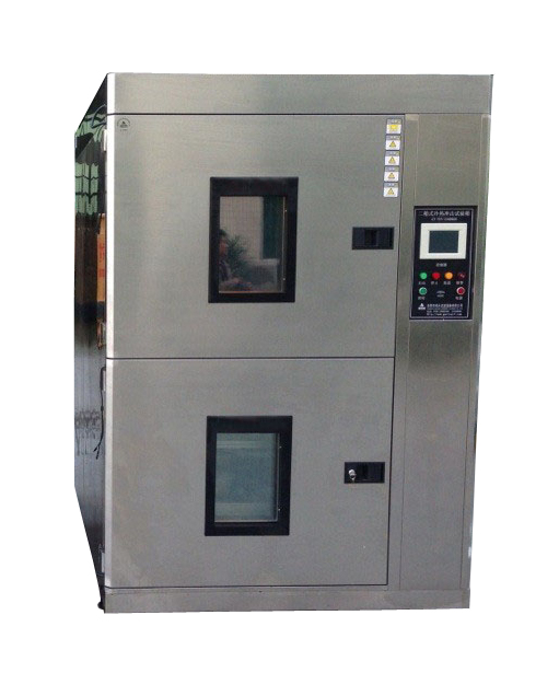 4、立式兩箱高低溫循環(huán)沖擊試驗箱:樣品放在蓄冷或蓄熱槽內(nèi),兩槽隔板瞬間打開,樣品移至另一槽內(nèi),兩槽溫度發(fā)生對流而變化至到達設(shè)定沖擊溫度所需要時間。