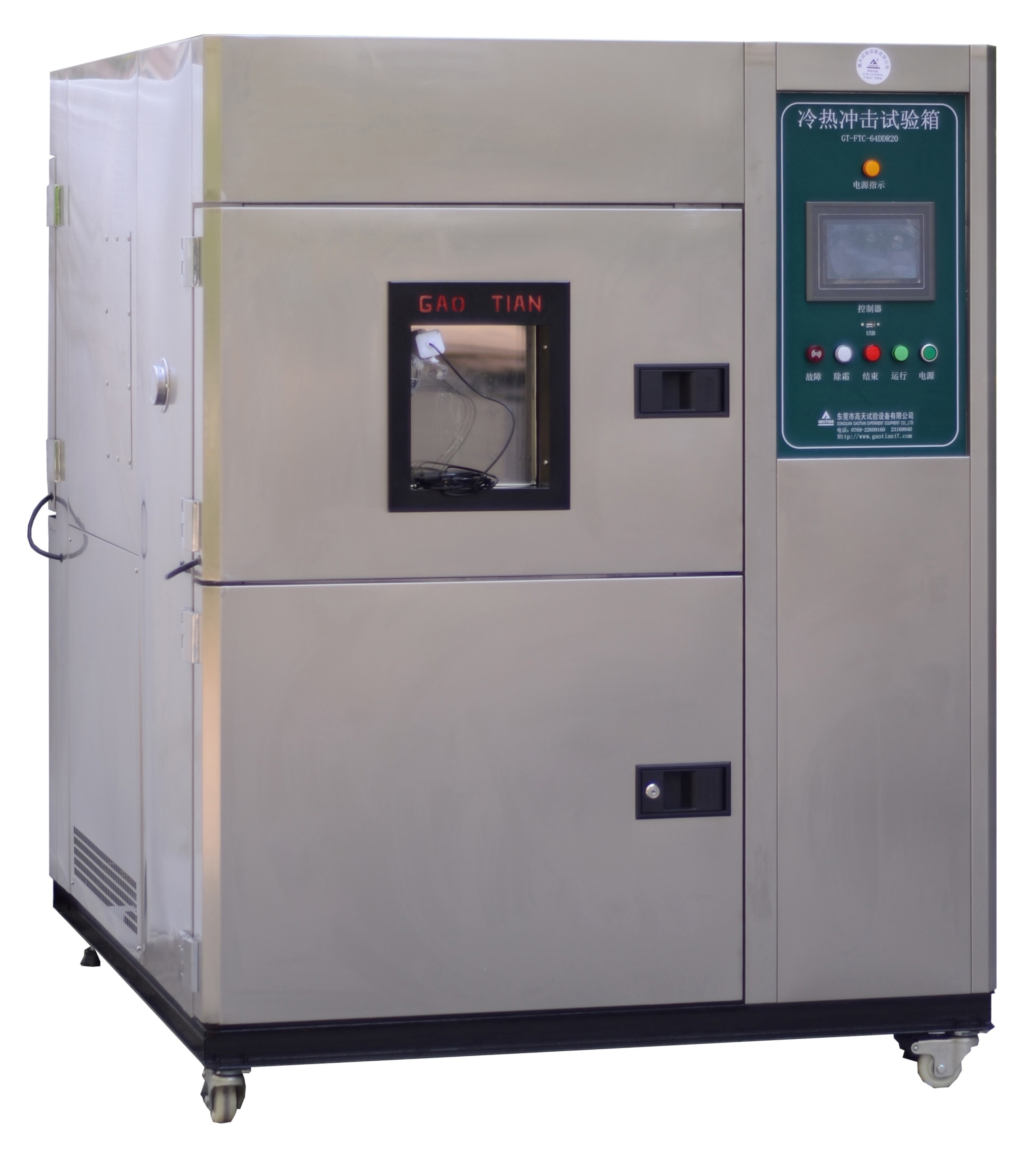該產品適用于:電子元氣件的安全性能測試提供可靠性試驗、產品篩選試驗等,同時通過此裝備試驗,可提高產品的可靠性和進行產品的質量控制。高低溫沖擊試驗箱是航空、汽車、家電、科研等領域必備的測試設備,考核和確定電工、電子、汽車電器、材料等產品,在進行高低溫試驗的溫度環(huán)境沖擊變化后的參數(shù)及性能,使用的適應性,適用于大學,工廠,軍工,研位,等單位.